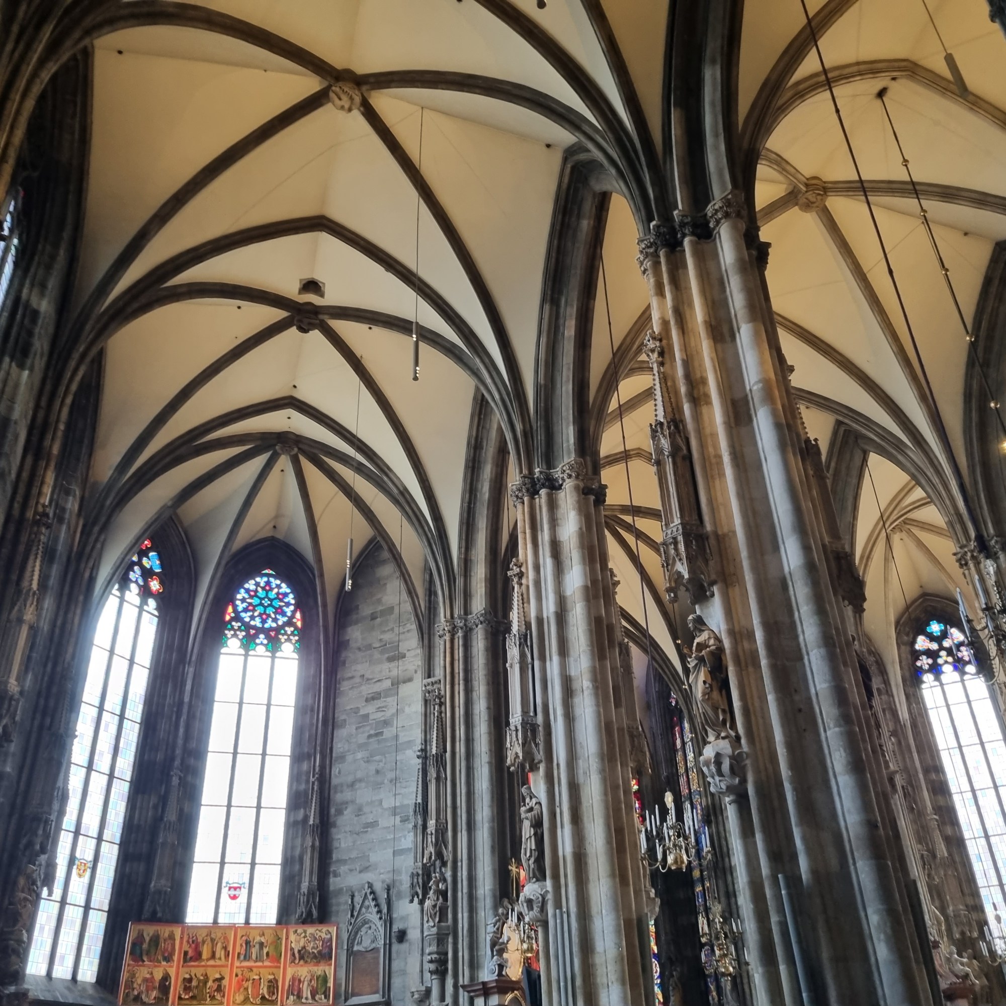 Anschliessend sind wir etwas etwas durch die Stadt flaniert. Richtung Michaeler Platz, dann an der Spanischen Hofreitschule vorbei, dann zu Hofburg, anschliessend zur Staatsoper und dann sind wir bei der Domkirche gelandet. Diese haben wir uns dann auch von innen angeschaut. Die ist nicht nur von aussen imposant, sondern auch von innen.