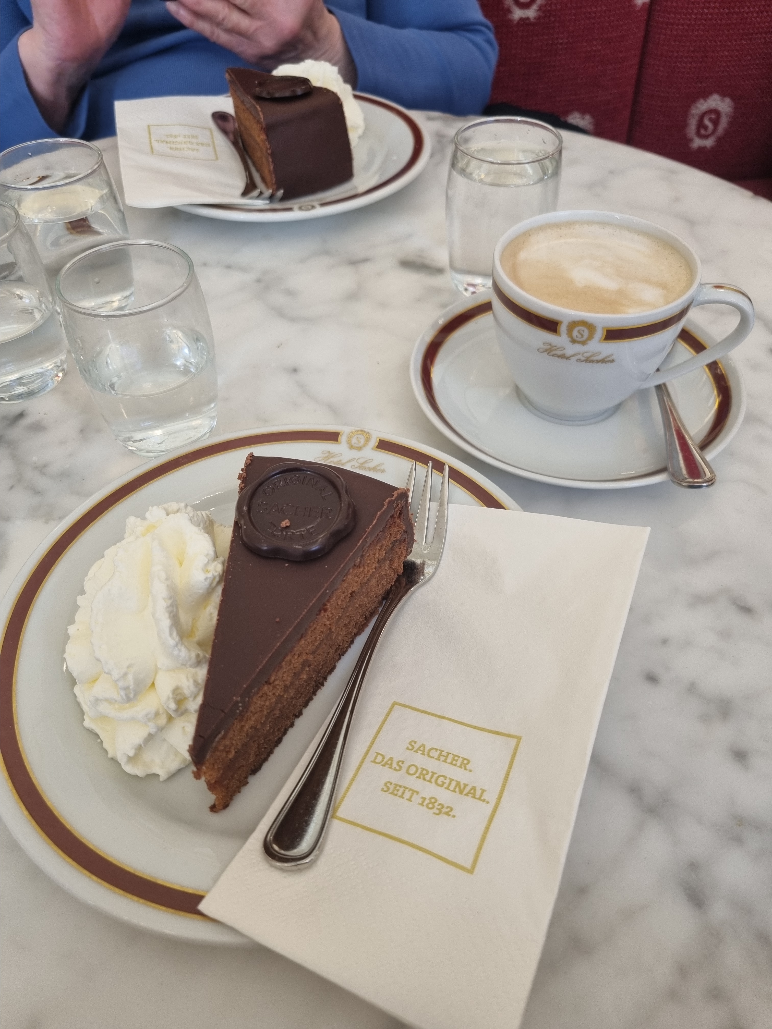 Am Sonntag sind wir wieder ganz früh raus um im Café Sacher frühstücken zu gehen. Auch da rate ich früh zu gehen oder zu reservieren. Auch da hatte es dann bald eine lange Schlange. Am Tag vorher als wir vorbei gelaufen sind, hatte es eine extrem lange Schlange. Wir haben zum Müesli Frühstück natürlich auch ein Stück Sachertorte genommen. Es war sehr lecker, aber halt auch teuer. Dies macht man aber wohl eh nur einmal im Leben.