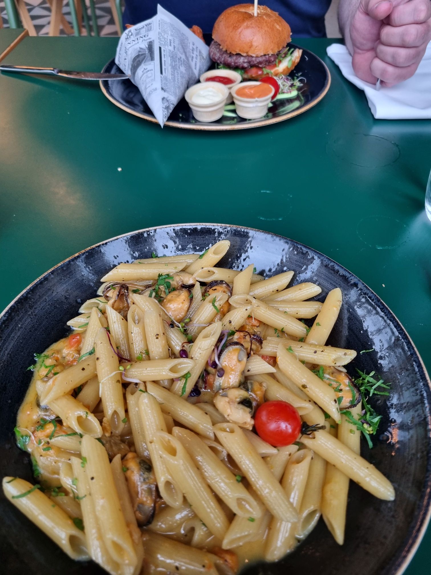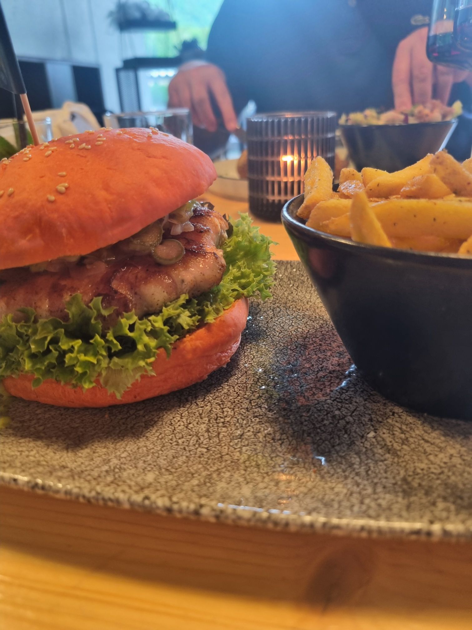 Gegessen haben wir dann natürlich auch gleich dort, im Alfreds. Am besten einen Tisch reservieren, je nach Saison wird es wohl schwierig, dass dann noch etwas frei ist. Man kann auf 17.30 oder 19.30 reservieren und müsste wenn man um 17.30 kommt je nachdem den Tisch bis 19.30 freigeben. Wir hatten aber Glück und es war nicht so viel los und konnten sitzen bleiben und den Abend geniessen. Dass Essen war sehr gut und Marc Trauffer kam dann auch noch vorbei. Mein Sohn hätte ihn zwar fast verpasst, da er ewig auf dem Klo war.