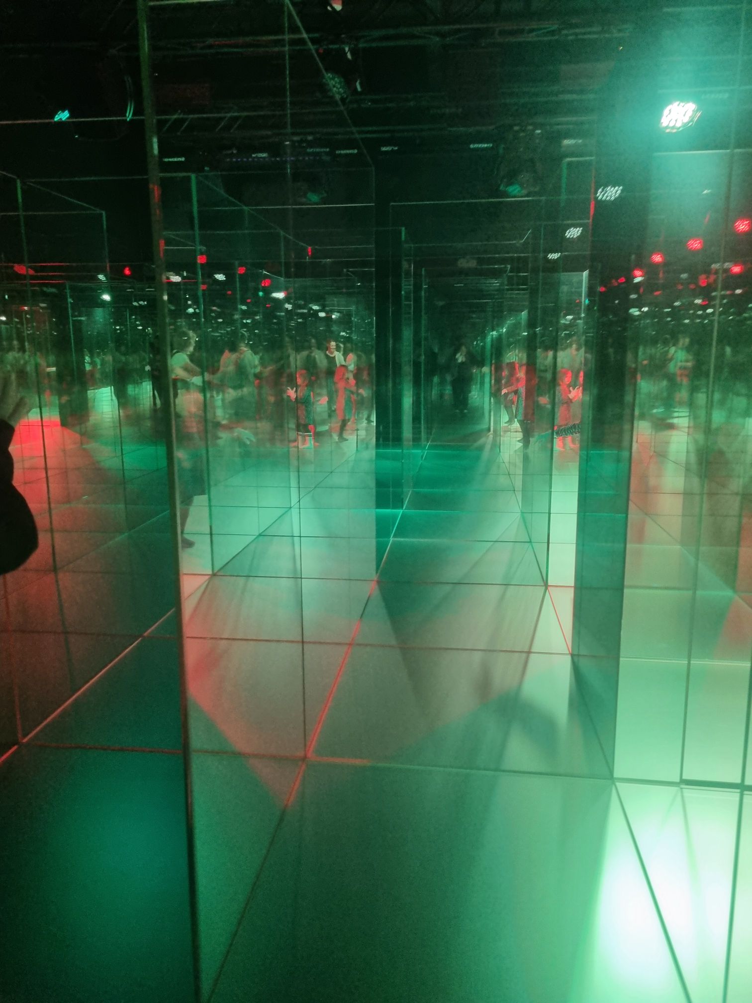 Erst sind wir, da sie dort eine Mittagspause machen, in das Glaslabyrinth. Da bekommst du Überzieher für die Schuhe und Handschuhe. Du musst dann immer mit den Händen voraus den Weg hindurch finden. Einfach aber richtig cool gemacht. Kosten 5.- pro Person, Kinder bis 10 Jahre Gratis.