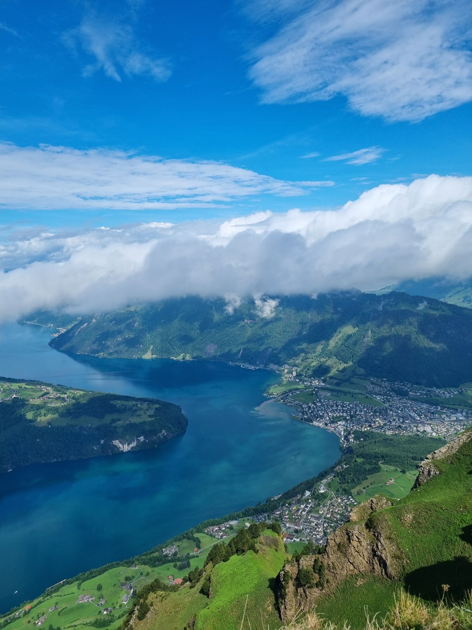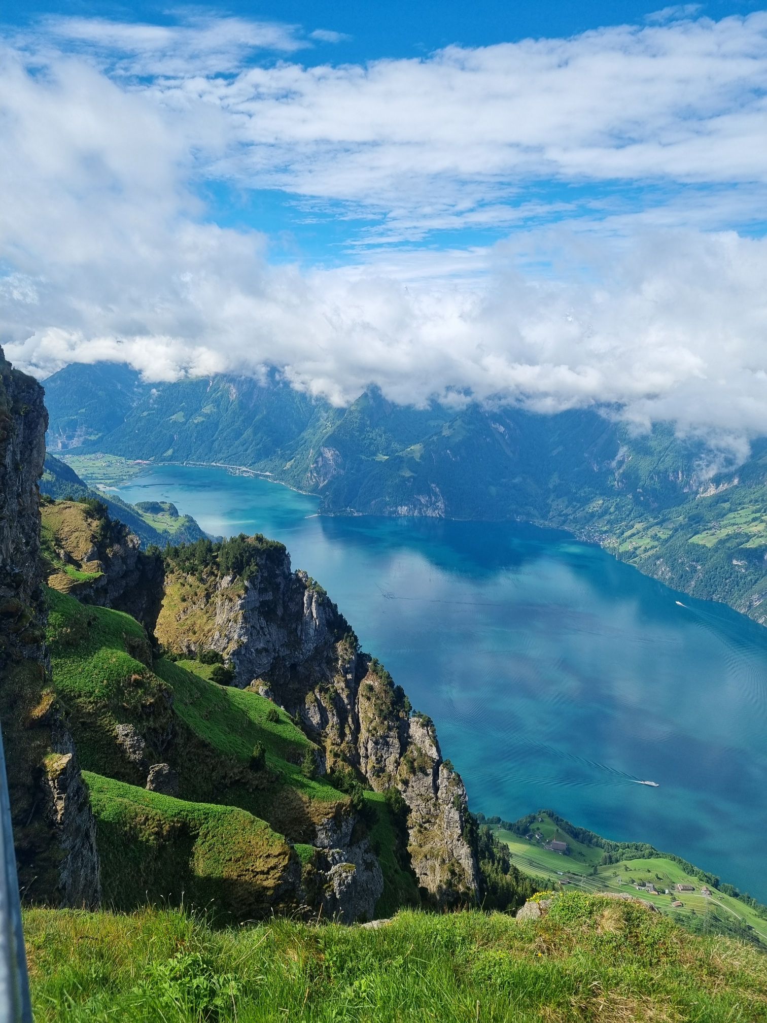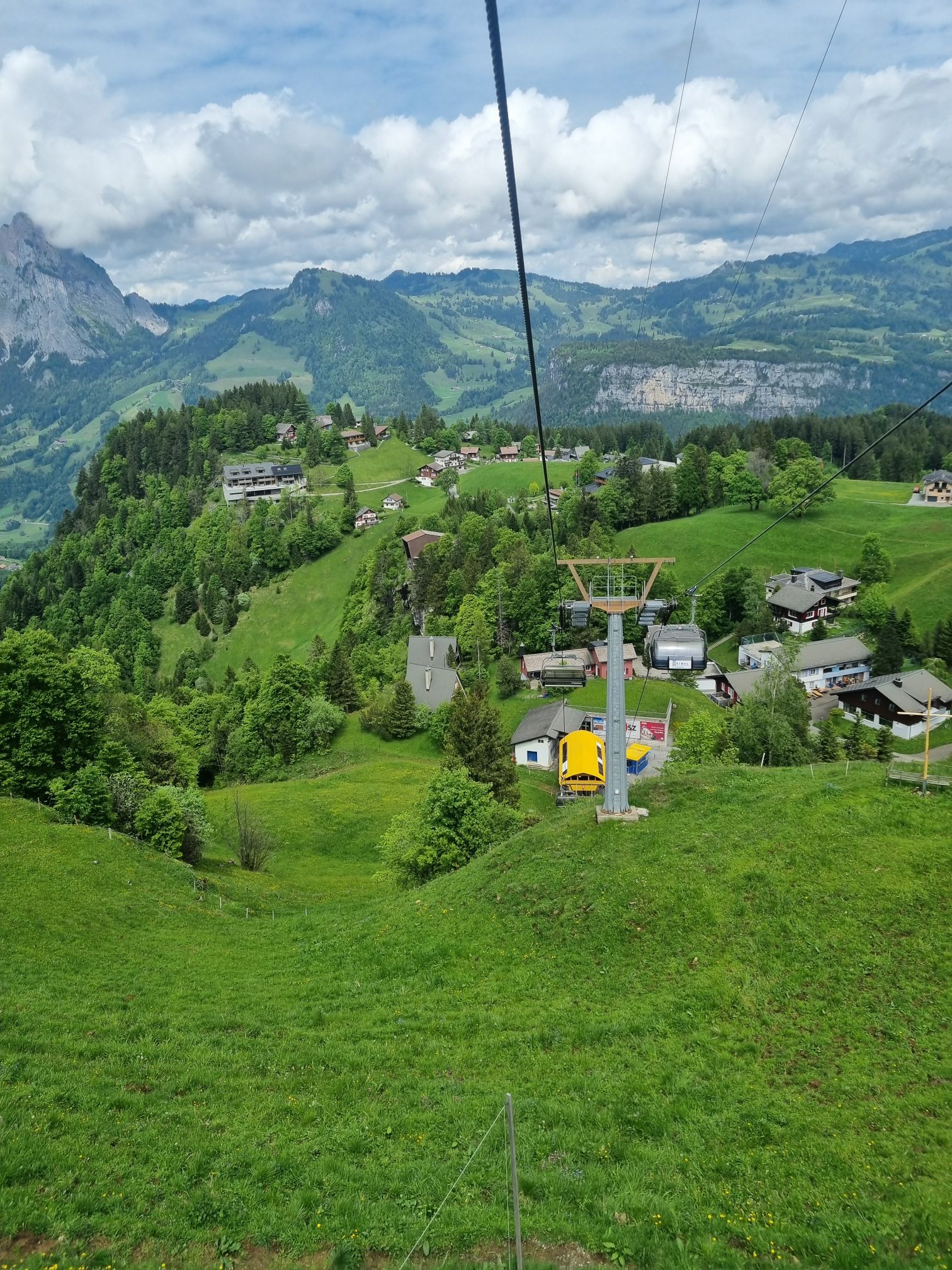 Nach dem guten und grossen Frühstücksbuffet konnten wir am Morgen dann doch noch auf den Fronalpstock, es war zwar immer noch etwas Wolkenverhangen, jedoch hat uns dann oben eine mega Aussicht auf einen Teil des Vierwaldstättersee erwartet. Wir sind dann doch mal los gelaufen Richtung Gratwanderung, die wir eigentlich geplant hatten. Jedoch waren die Wolken sehr hartnäckig und wir hätten nicht wirklich viel gesehen. Deshalb sind wir dann zum Panoramaweg abgebogen, der dann wieder zum Restaurant führt. Haben uns dann noch etwas hingesetzt und Nico hat noch etwas auf dem Spielplatz gespielt. Da wir doch noch etwas wandern wollten, sind wir dann zur Mittelstation runtergelaufen. Oben kann man noch eine Holzmurmel kaufen, es hat dann einige Stationen mit Murmelbahnen. Die Wege runter sind abwechslungsreich, es geht mal über Steine, Wiesen und auch normale Wege. Da es eben schon sehr nass war musste man schon aufpassen, da es zum Teil rutschig war. Auch sonst sind die Wege zum Teil nicht ganz ohne, aber wenn man etwas Vorsichtig ist geht es schon. Unterwegs sind wir bei der Alpwirtschaft Laui noch eingekehrt. Da hast du auch eine tolle Aussicht, man sieht sogar die Leute über die Gratwanderung laufen.