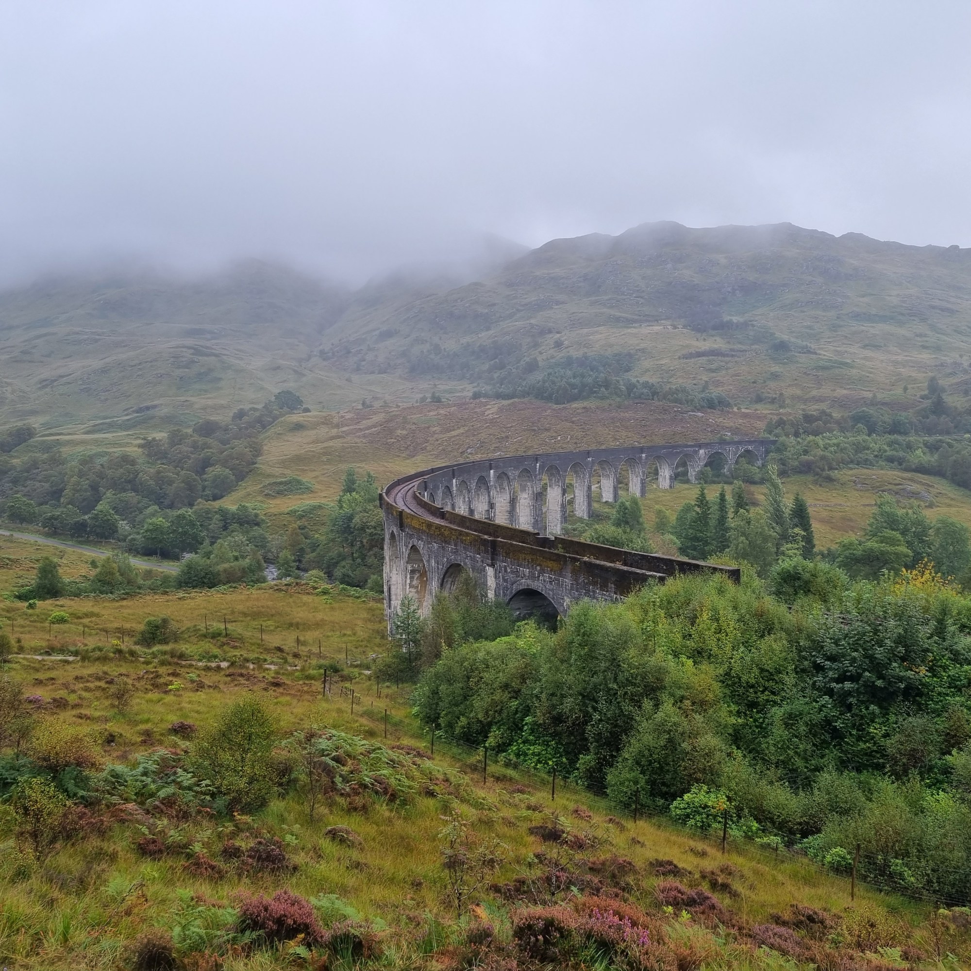 Anschliessend sind wir dann Richtung Fort William gefahren unserer nächsten Station. Am besten nimmt man den Weg durch das Glen Coe Tal, durch die wunderschöner Natur, mit unzähligen Wasserfällen. Beliebtes Ziel ist auch der Ben Nevis für Wanderer oder die Ben Nevis Distillery für die Whisky Liebhaber. Beides mussten wir auslassen, da wir am nächsten Tag die Fähre nach Isle of Skye schon um 11 Uhr erreichen mussten, haben wir uns entschieden die Sehenswürdigkeiten auf dem Weg dorthin zu machen. Da es sich dabei um die berühmte Glennfinnan Brücke handelte, die wohl jeder aus Harry Potter kennt, ist uns die Wahl leicht gefallen. Kleiner Tipp informiert euch vorher wann der Zug vorbei kommt, dies haben wir nicht gemacht. Als wir zur Brücke gelaufen sind kamen uns viele Leute entgegen, da war uns klar, ah der Zug ist wohl vor kurzem gekommen. Vorteil dafür wir waren dann alleine auf dem Berg. Wenn man kommt damit man die Brücke mit dem Zug fotografieren kann, werden einige andere Leute dies wohl auch machen. Die Fotos sind auch ohne Zug schön geworden 🙂