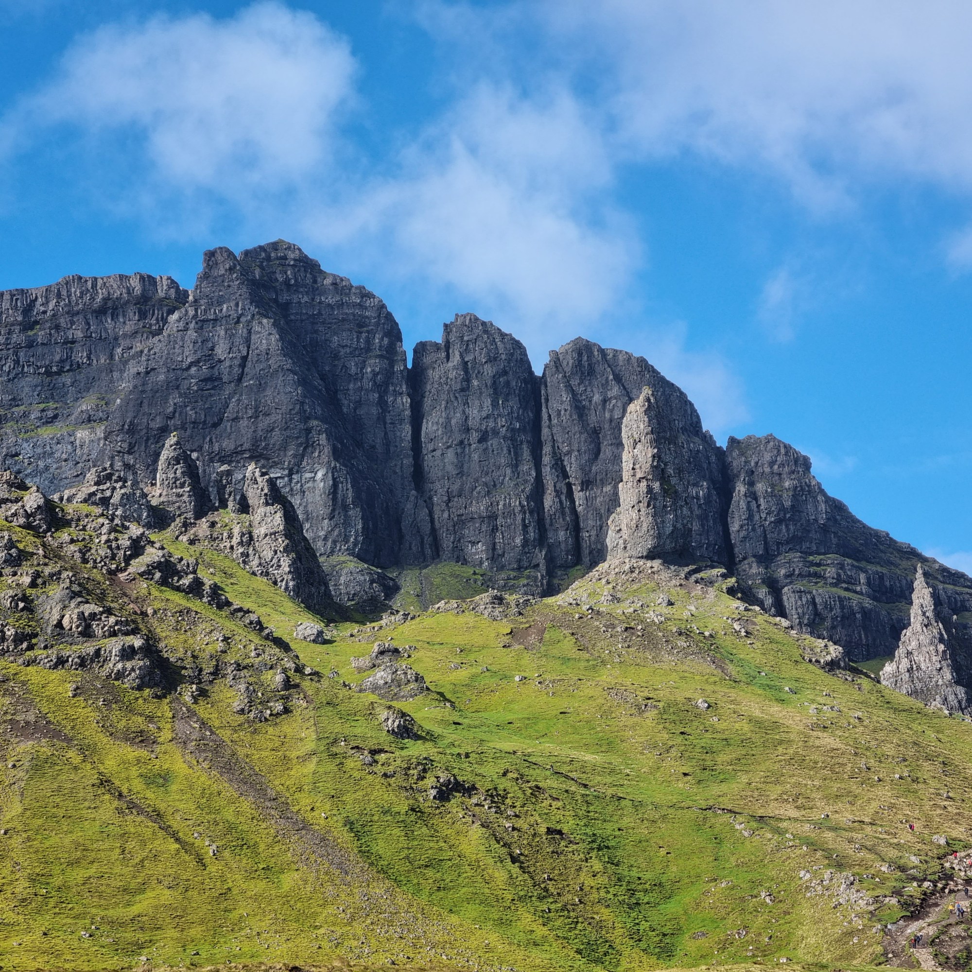 Als erstes sind wir zum Old Man of Stor gefahren, dies ist ein spezielle Bergformation. Dafür muss man ein kleine Wanderung machen, diese ist aber gut machbar. Anschliessend sind wir zum Kilt Rock gefahren, Eine sehr schöne Steilküste, die einem gefalteten Kilt ähnlichsieht, im Vordergrund hat es einen Wasserfall. Echt schöner Ausblick, kann ich nur empfehlen. Danach sind wir einfach schön der Hauptstrasse entlang gefahren. Haben Schafe angetroffen, die schöne Natur genossen und sind dann auf die Ruinen von Duntulm Castle gestossen, Es war cool so durch die Ruinen zu laufen und sich vorzustellen, wie das Schloss mal ausgesehen haben muss.