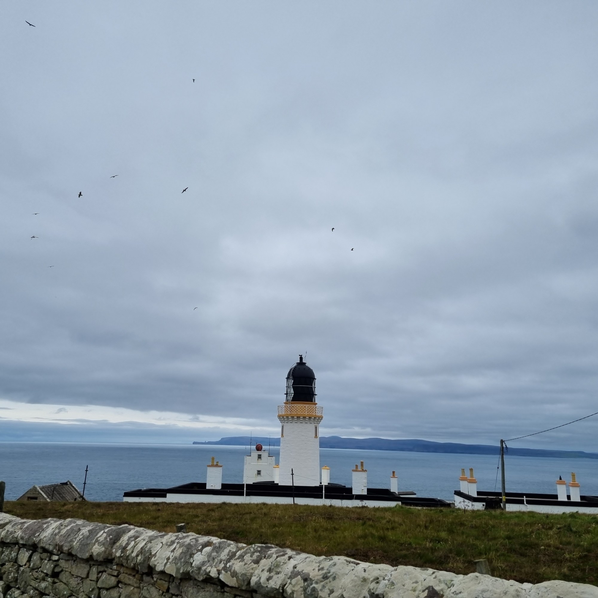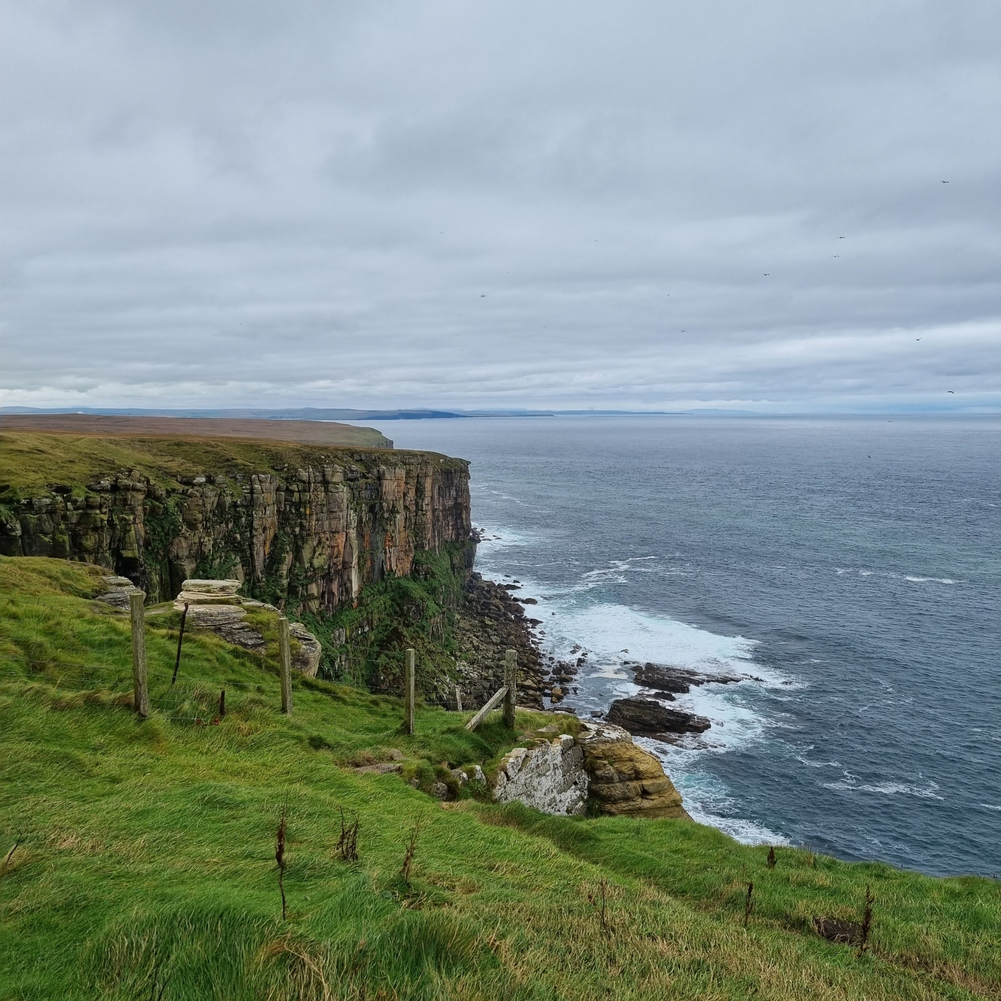 Dann ging es zum nördlichsten Punkt des Festlandes: Dunnet Head. Hier steht ein Leuchtturm und auf der anderen Seite des Meerarmes Pentland Firth kann man bei gutem Wetter die Orkneyinseln, an sehr klaren Tagen sogar bis zum Cape Wrath, dem nordwestlichsten Punkt Schottlands sehen.